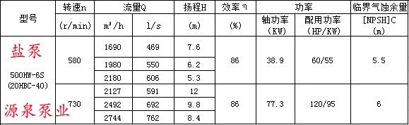 500HW混流泵的性能参数 |